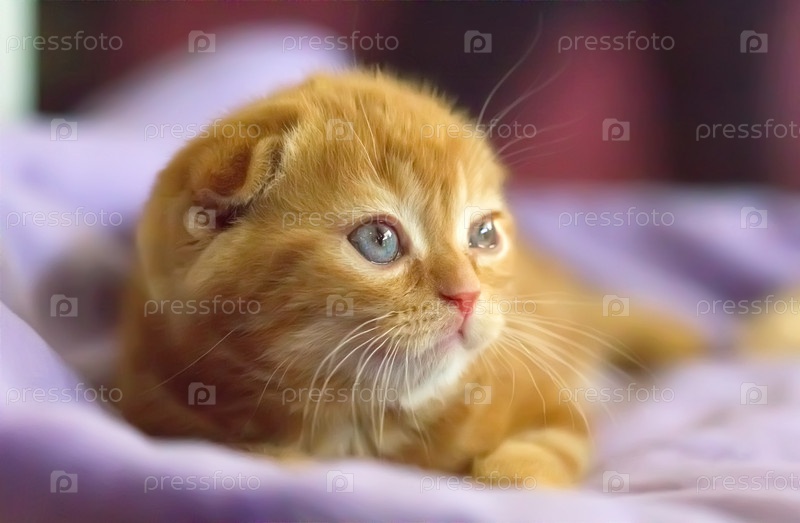 Симпатичный рыжий котенок шотландской вислоухой