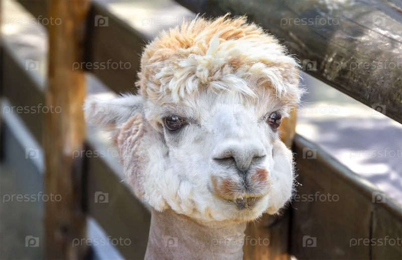 Крупный план белой альпаки. Нижний Новгород, Россия