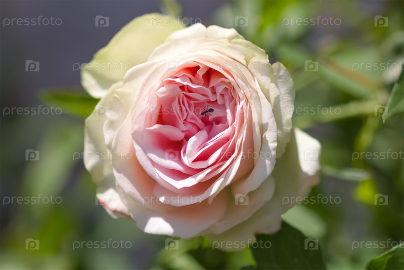 Белая розовая роза и муравей на ней