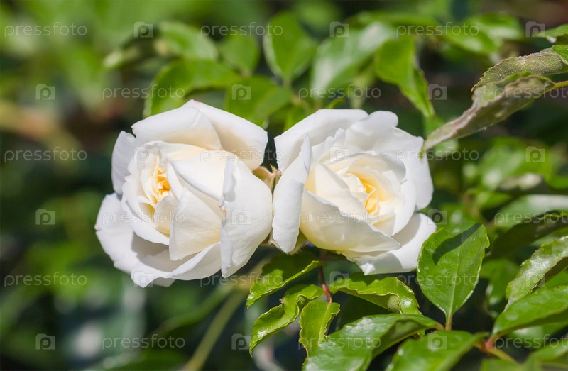 Два красивых цветка белой желтой розы