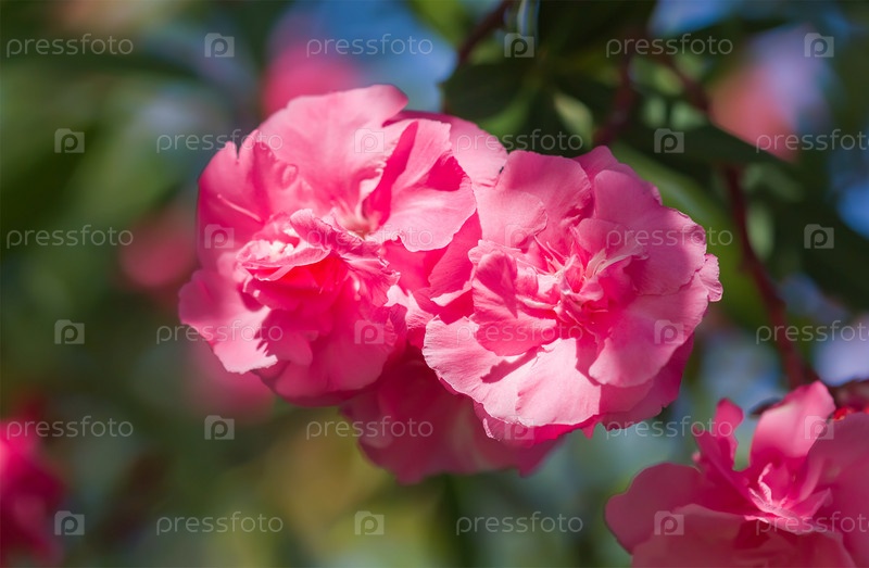 Цветущие розовые цветы олеандра или нериум в саду