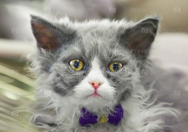 Симпатичный серый котенок Селкирк Рекс