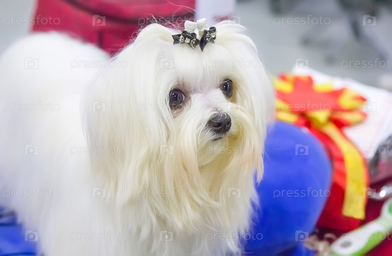 Портрет красивой белой собаки Бишон