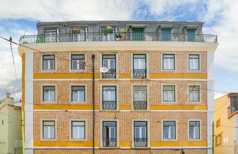 Старый дом с традиционной плиткой в Алфаме. Лиссабон, Португалия