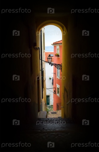 Маленькая узкая улочка. Лиссабон, Португалия