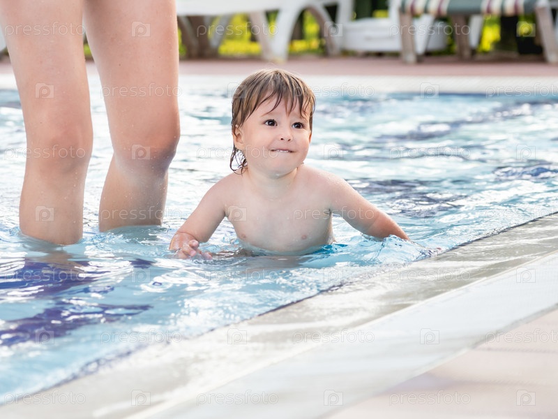 Малыш плавает в детском бассейне. Обучение детей плаванию с раннего детства. Спорт, активный образ жизни и физическое развитие