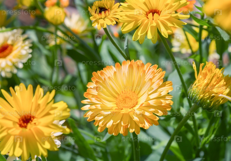 Желтые цветы хризантемы в саду