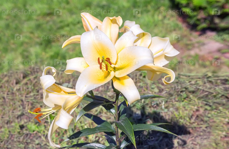 Цветущие желтые лилии в саду