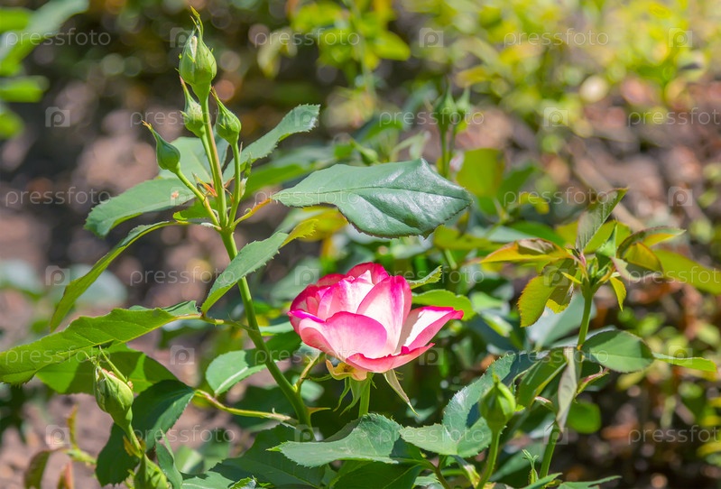 Красно-белая роза в саду