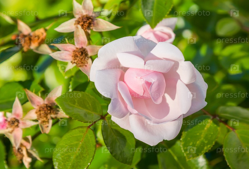 Розовая роза в саду