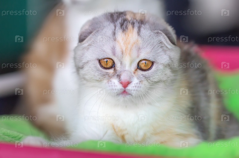 Маленький шотландский вислоухий котенок с желтыми глазами
