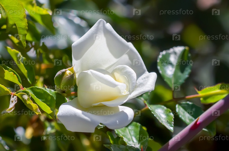 Раскрывающийся бутон красивой белой розы
