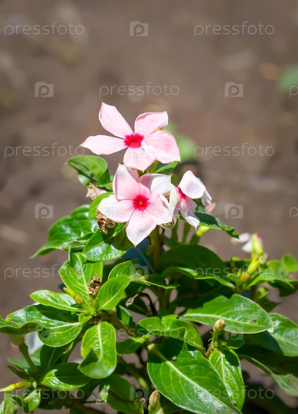 Катарантус розовый в саду. Цветочный фон