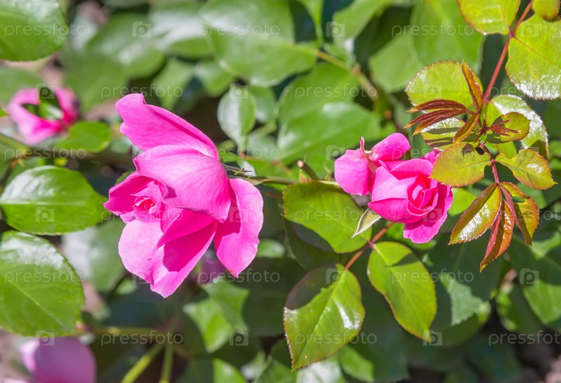 Красивые розовые розы в саду
