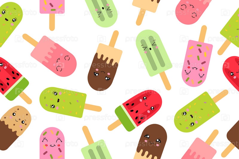 Фон мороженого эскимо на палочке в стиле каваи. Векторная иллюстрация на белом фоне