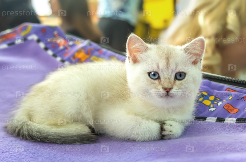 Шотландский прямоухий котенок с голубыми глазами и бежевым мехом