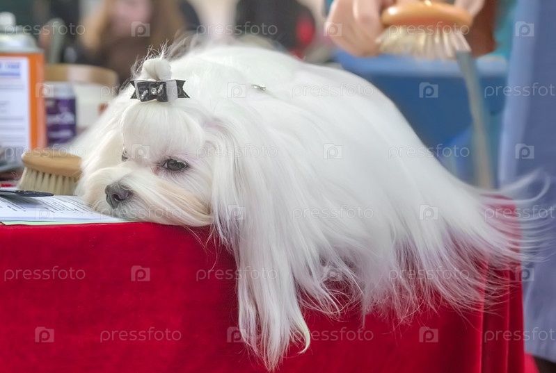 Симпатичная белая длинношерстная мальтийская болонка
