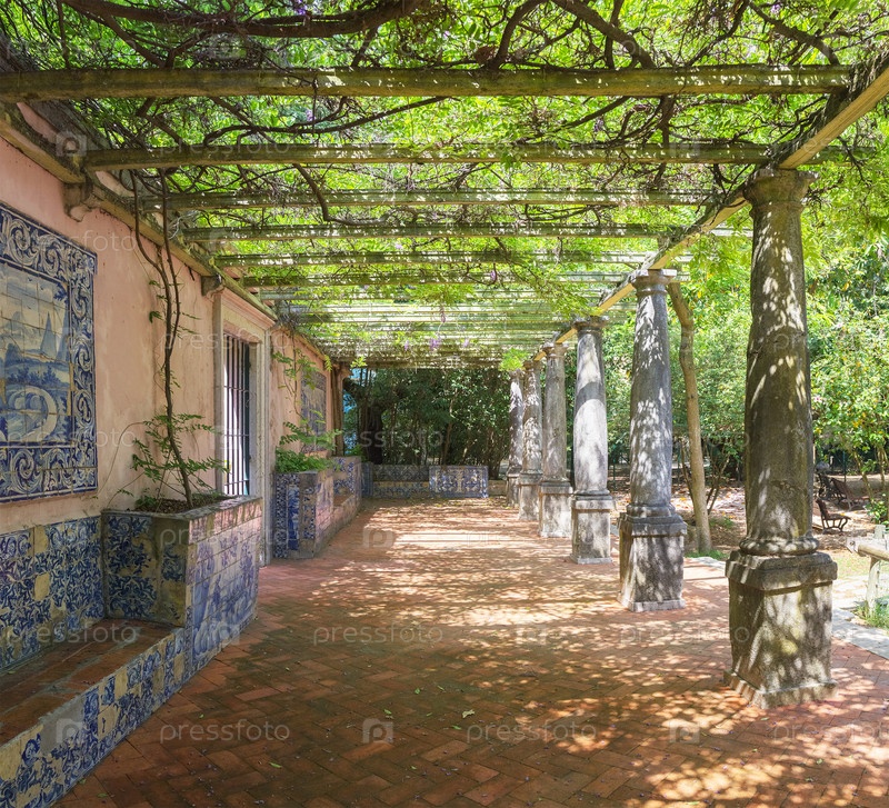 Пергола или веранда в зоопарке Лиссабона. Португалия