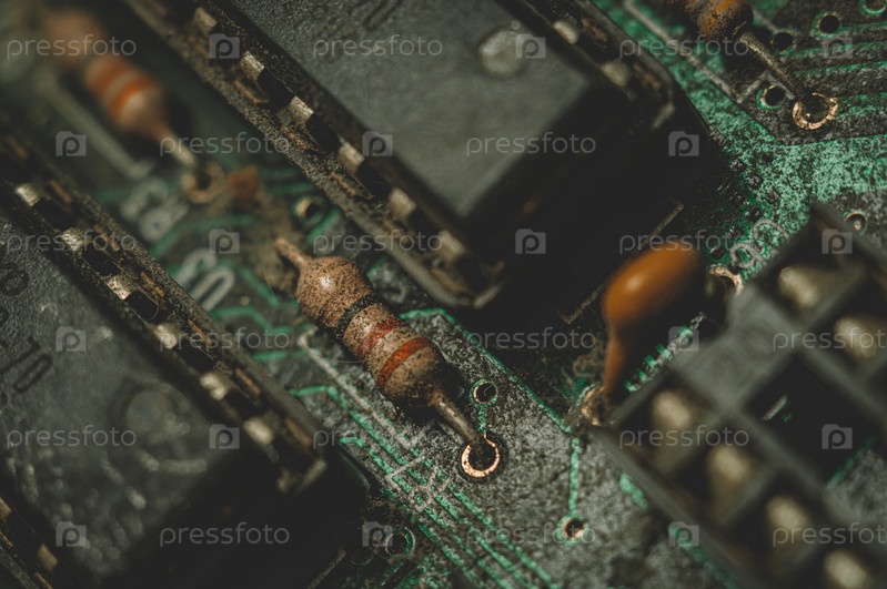 Резистор лежит в пыли на старой материнской плате