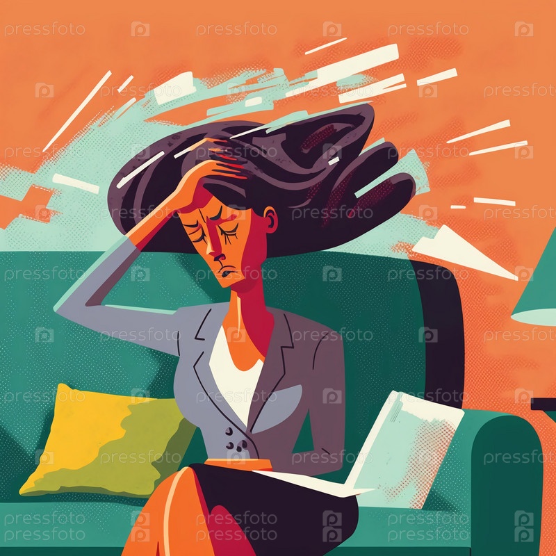 Бизнес-леди страдает от головной боли (Businesswoman suffers from headaches)