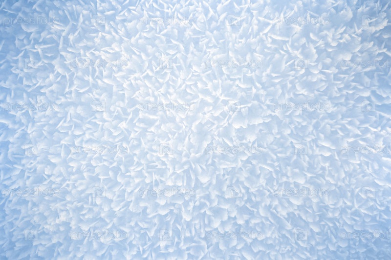 Снежный фон. Абстрактная текстура поверхности снега с большими кристаллами. Вид сверху
