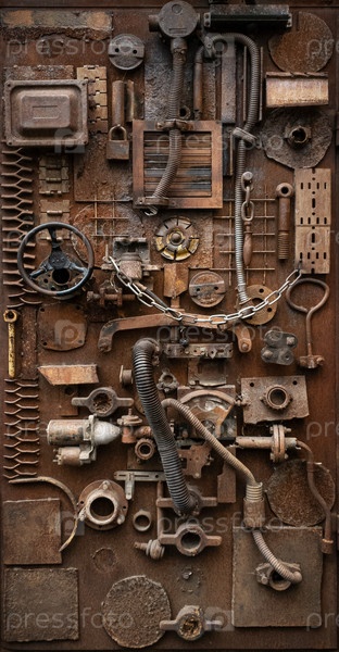 Абстрактный фон ржавого металла. Группа коррозионно-текстурированных деталей машин