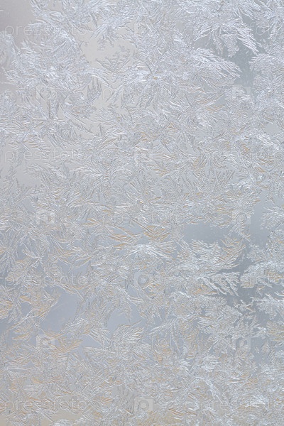 Замерзшие капли сконденсированного пара падают на прозрачное оконное стекло. Чистый синий фон. Конденсация влаги при экстремальных температурах. Красивая текстура природы