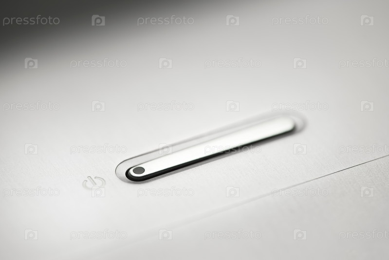 Кнопка включения на алюминиевой панели. Выборочный фокус