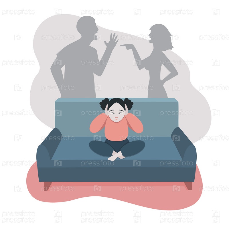 Маленькие напуганные девочки терпят крики и ссоры родителей. Насилие в семейном концептуальном баннере или на целевой странице. Злые родители. Неправильное воспитание, детские психологические травмы