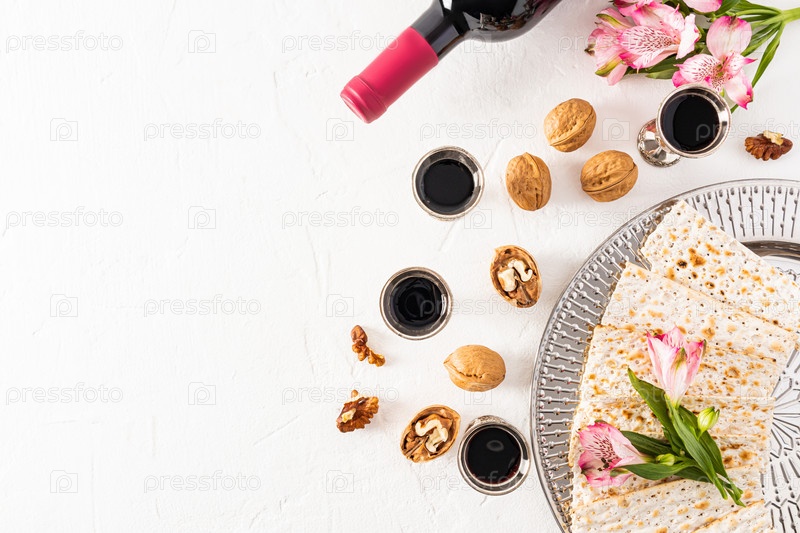 Вид сверху на традиционную пустышку к еврейской пасхе на белом фоне с копией пространства. плоская планировка. концепция праздника