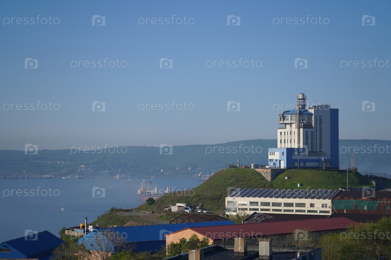 Владивосток, Россия-28 мая 2020 г.: Городской пейзаж с видом на побережье и море