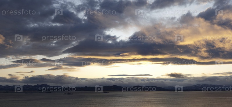 Панорама Авачинской бухты с видом на вулкан Вилючинский. Камчатка, Россия
