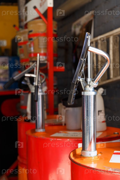 Станция обслуживания. Масляная бочка для двигателя автомобиля