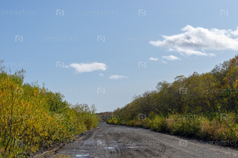 Природный ландшафт с проселочной дорогой. Камчатка, Россия