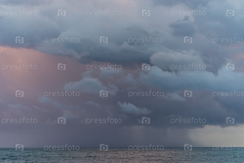 Морской пейзаж с драматическим морским закатом над Черным морем