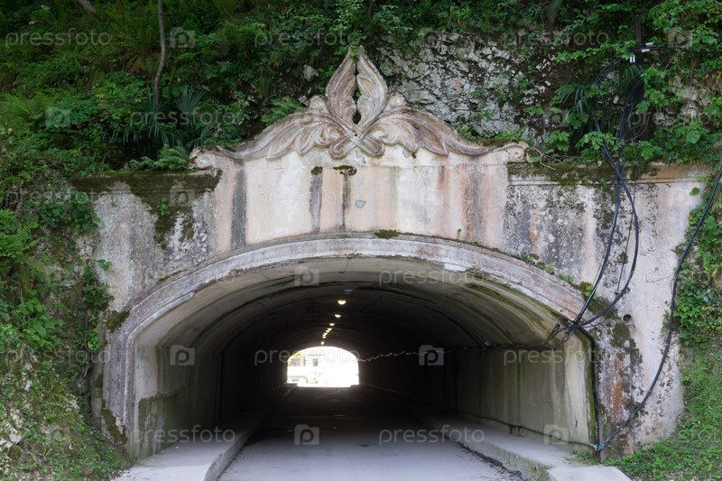 Тоннель под горой с красивой резной аркой