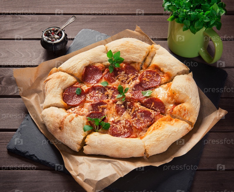 Домашняя пицца пепперони на деревянном фоне