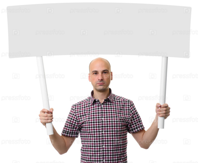 Мужчина держит знак протеста или место для надписи. Концепция демонстрации или рекламы,призыв