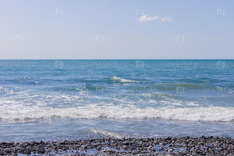 Морской волнистый горизонт, красивый морской пейзаж в солнечный день