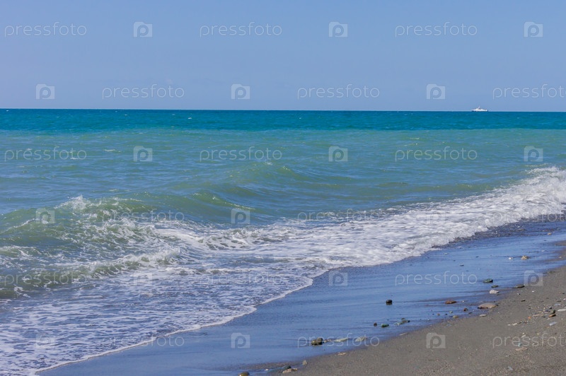 Морские волны бегут к галечному берегу. Плак Береговая линия моря