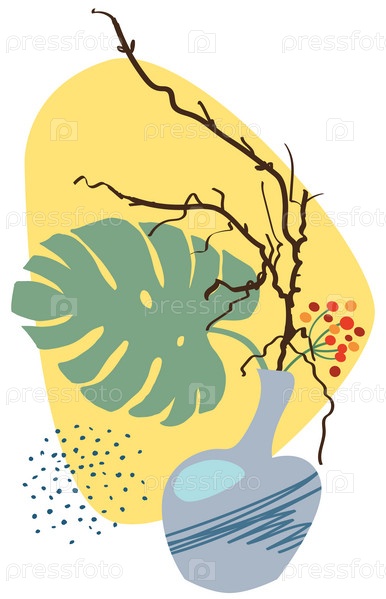 Абстрактные плакаты с вазами. Модный коллаж натюрморта с горшком, растением и вазой. Ручной рисунок минималистского набора векторов формы. Иллюстрационный горшок с цветочным изображением для декоративного интерьера