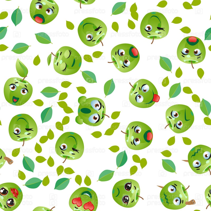 Бесшовный рисунок фруктового яблока. Смешные милые лица персонажей