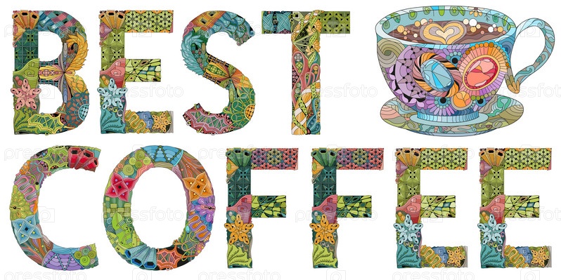 Художественный дизайн ручной росписи. Нарисованные вручную слова иллюстрации ЛУЧШИЙ КОФЕ с силуэтом чашки для футболки и других украшений