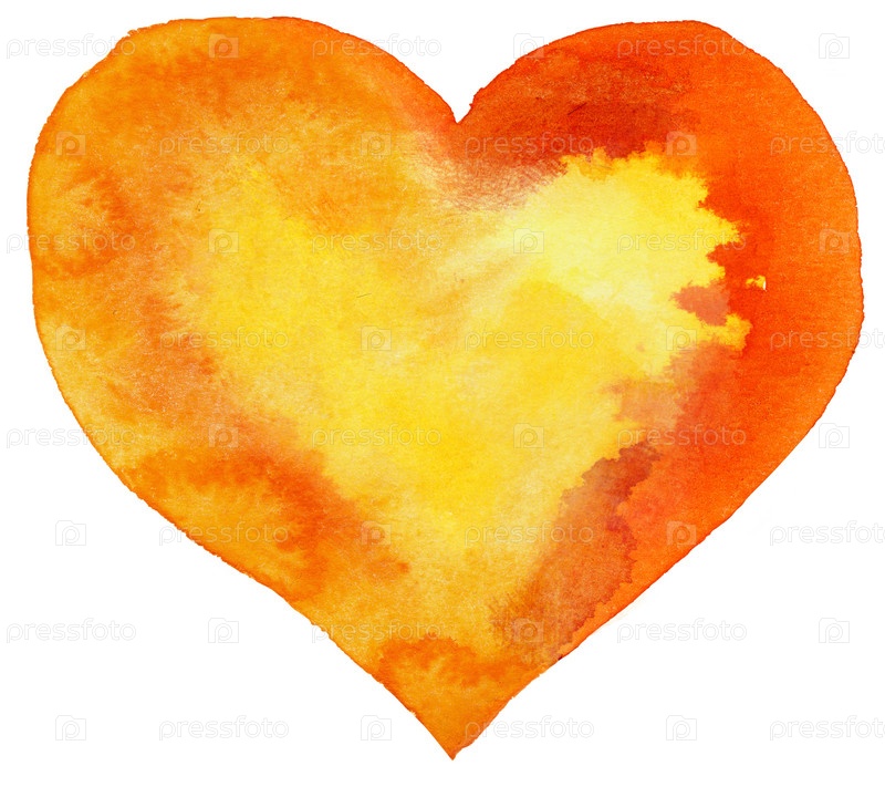 Акварель оранжевое сердце с желтым центром