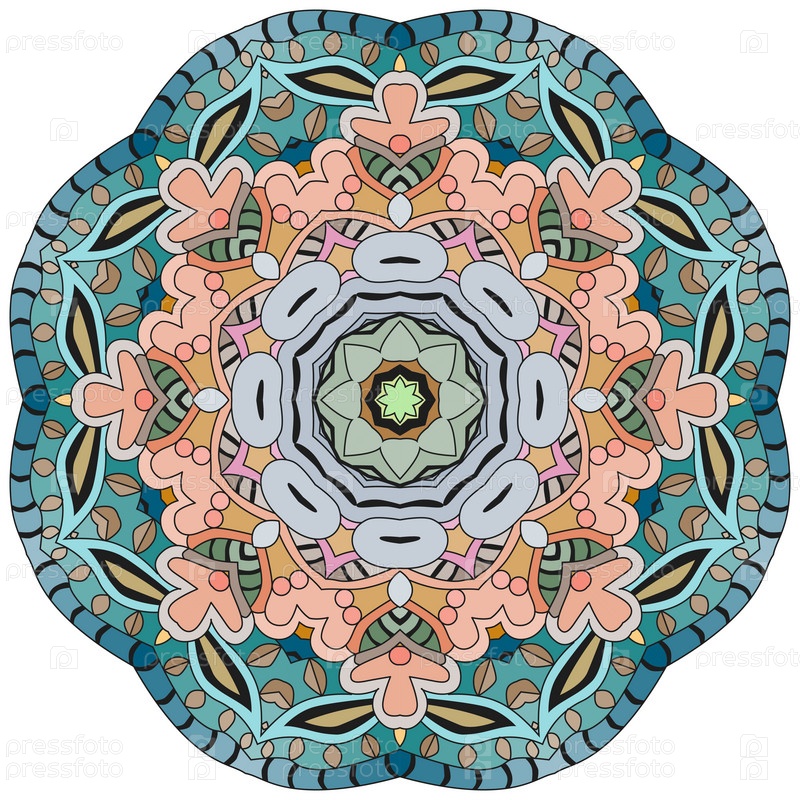 Декоративный круглый орнамент. Необычная форма цветка. Восточный вектор, схемы антистрессовой терапии. Переплетение элементов дизайна. Вектор логотипов йоги