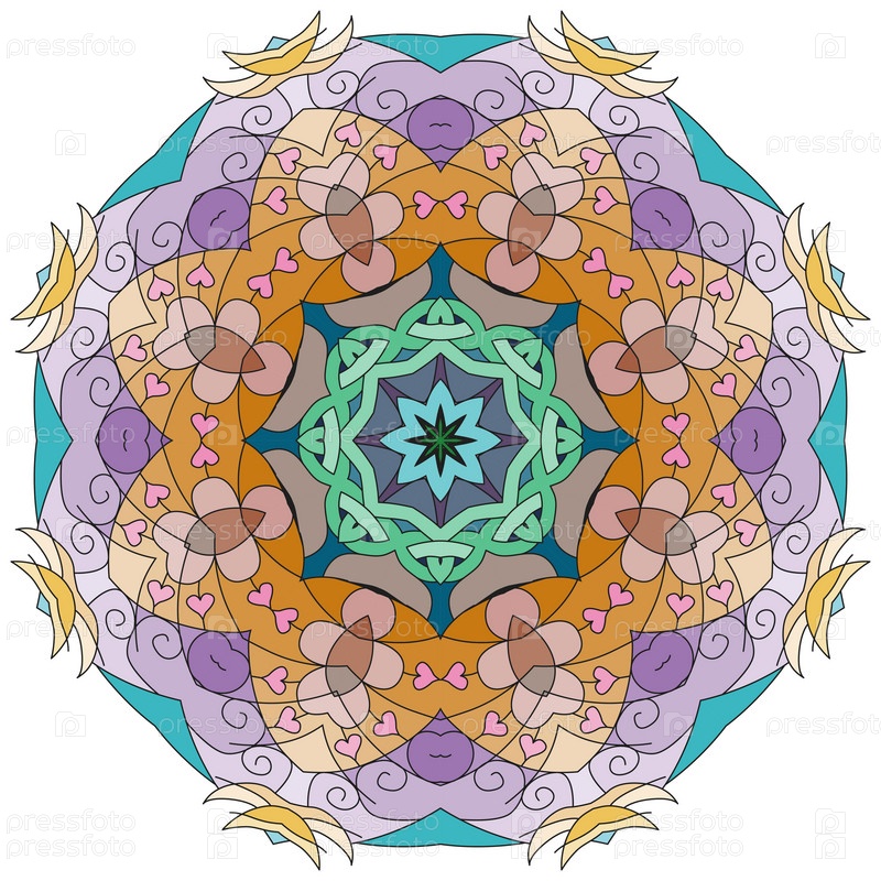 Декоративный круглый орнамент. Необычная форма цветка. Восточный вектор, схемы антистрессовой терапии. Переплетение элементов дизайна. Вектор логотипов йоги