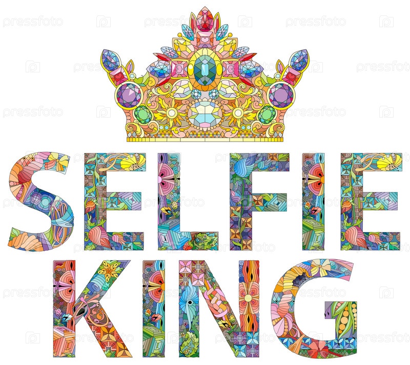 Король селфи с короной - нарисованный от руки типографский плакат. Концептуальный рукописный текст