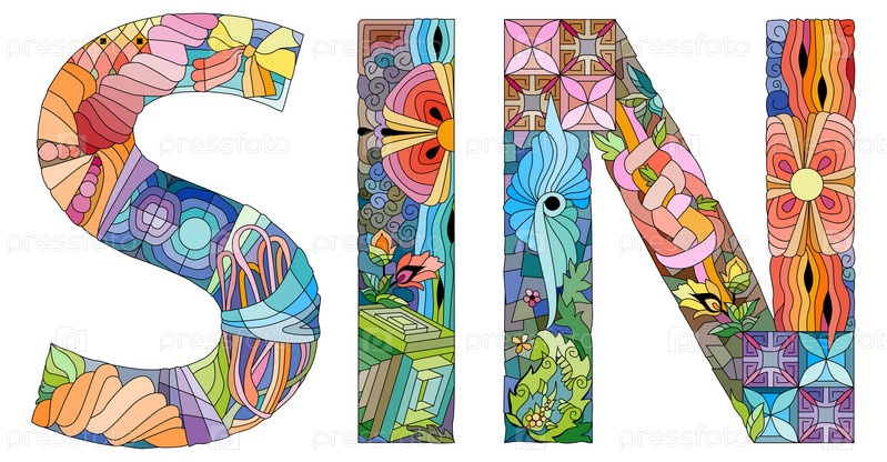 Художественный дизайн ручной росписи.Ручная рисование слова SIN для футболок и других украшений