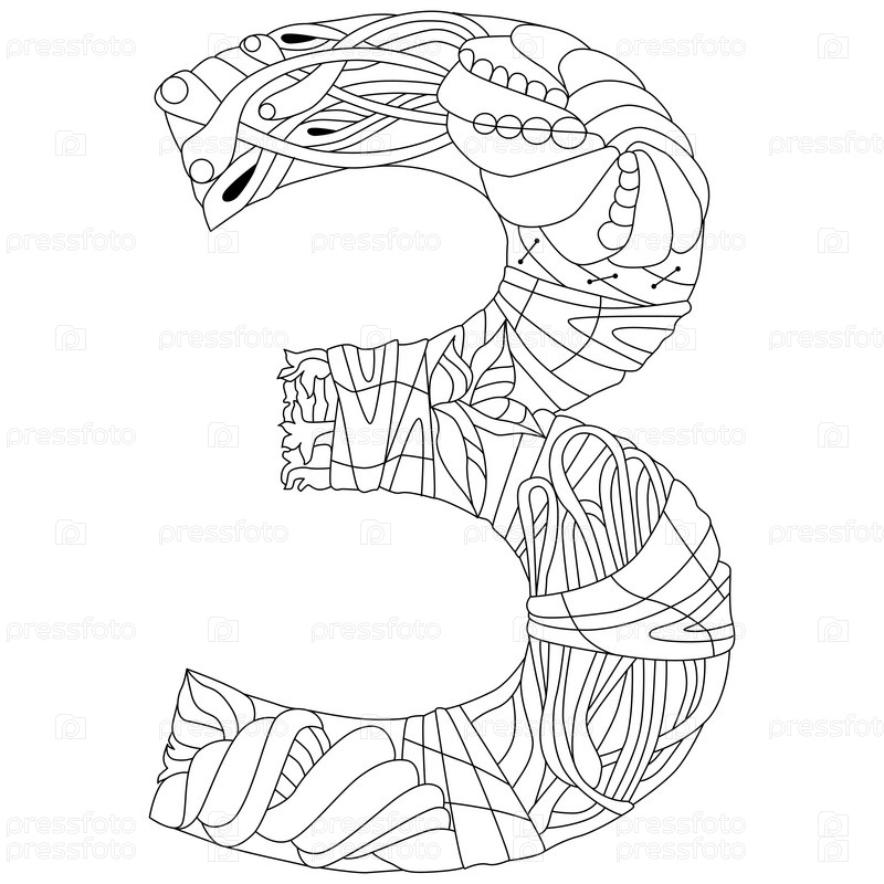 Три числа Изолированная иллюстрация zentangle для окраски
