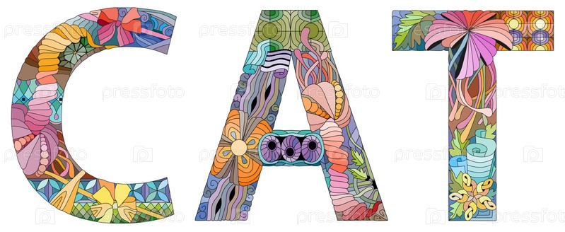 Художественный дизайн ручной росписи.Ручное рисование слов CAT для футболок и других украшений